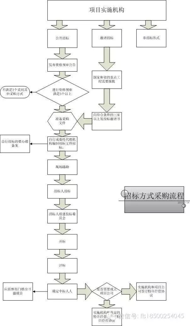 11、订立特许经营协议。实施机构应当与依法选定的特许经营者应当自中标通知书发出之日起三十日内,签订特许经营协议。需要成立项目公司的,实施机构应当与依法选定的投资人签订初步协议,约定其在规定期限内注册成立项目公司,并与项目公司签订特许经营协议