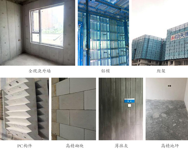 快建造体系。体现“全现浇外墙+铝模+爬架+高精砌块+薄抹灰+精准地坪+PC+全穿插”的快建体系,结合深化设计,缩短工期、减少质量通病、降本增效、绿色施工、提升客户满意度。