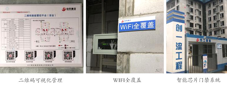 信息化辅助系统。门禁识别、扬尘监控、二维码、信息化、可视化管理等辅助手段实施运用,采用现场Wifi全覆盖,实现手机端与信息化辅助系统后台无缝对接,使项目管理动作真正有效落地。