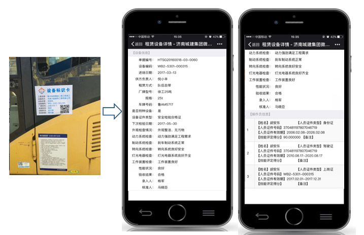 3.人员信息查询。被授权的管理人员可以通过微信企业号二维码扫描查询工人信息,确保实名制。